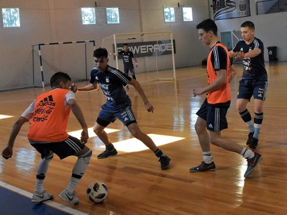 La Selección se entrenó por espacio de dos horas en el Coliseo Futsal, la cancha de parquet que AFA posee en el Predio Julio Grondona, con ejercicios de salida de presión, inferioridad numérica y en espacio reducido.