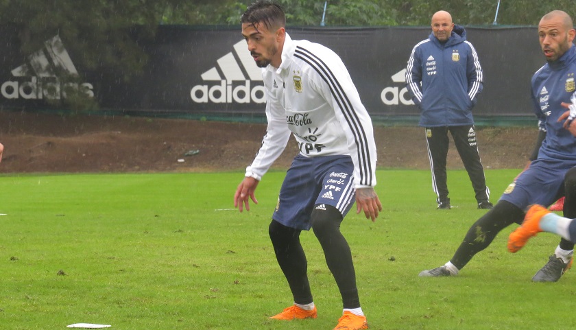 Los cinco futbolistas preseleccionados por Jorge Sampaoli se entrenaron por tercera vez en la semana en el Predio Julio Humberto Grondona. Mascherano, Lanzini, Tagliafico y Salvio, realizaron la tradicional entrada en calor con el PF Jorge Desio bajo una intensa lluvia.
