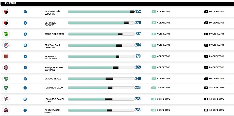 Pero la estadística no termina aquí, porque hablamos del más pasador, pero no del futbolista más efectivo. Ése es Santiago Ascacíbar, de Estudiantes, que posee la marca récord de 93,7% de claridad a la hora de ceder el instrumento preciado. ¿Números exactos? 270 pases, de los cuales son 253 correctos. Chapeau.