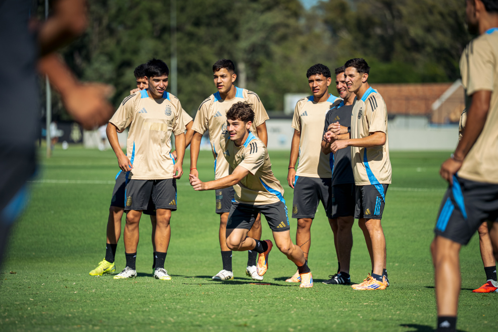 Tras derrotar 6-1 a Chile en su debut, el plantel argentino se entrenó esta tarde con la mente puesta en Japón. Tras una entrada en calor, hubo un bloque de pases. Mientras tanto, los arqueros trabajaron en uno de los arcos bajo las órdenes de Fernando Escobar.