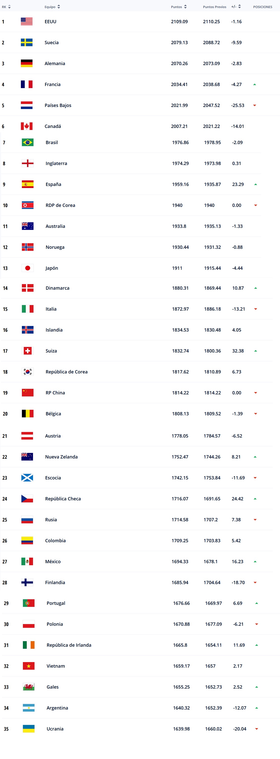 Ranking FIFA Femenino: Argentina subió una posición y se encuentra 34°