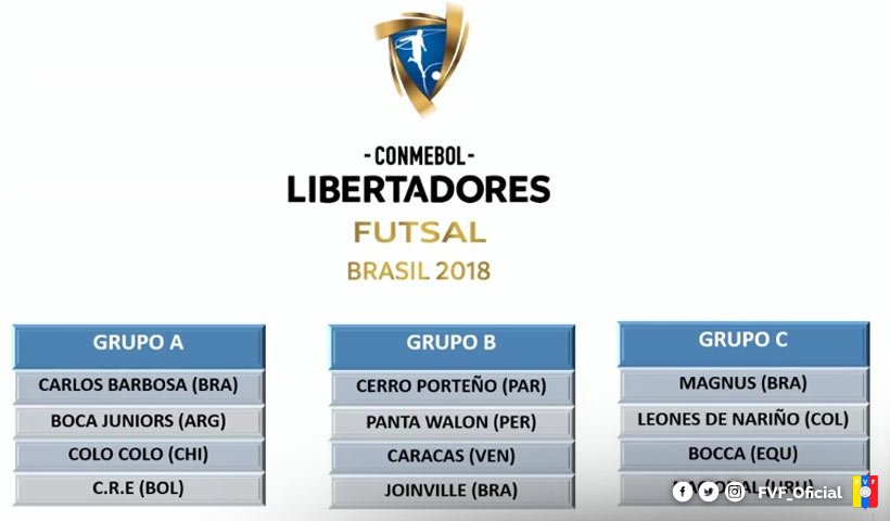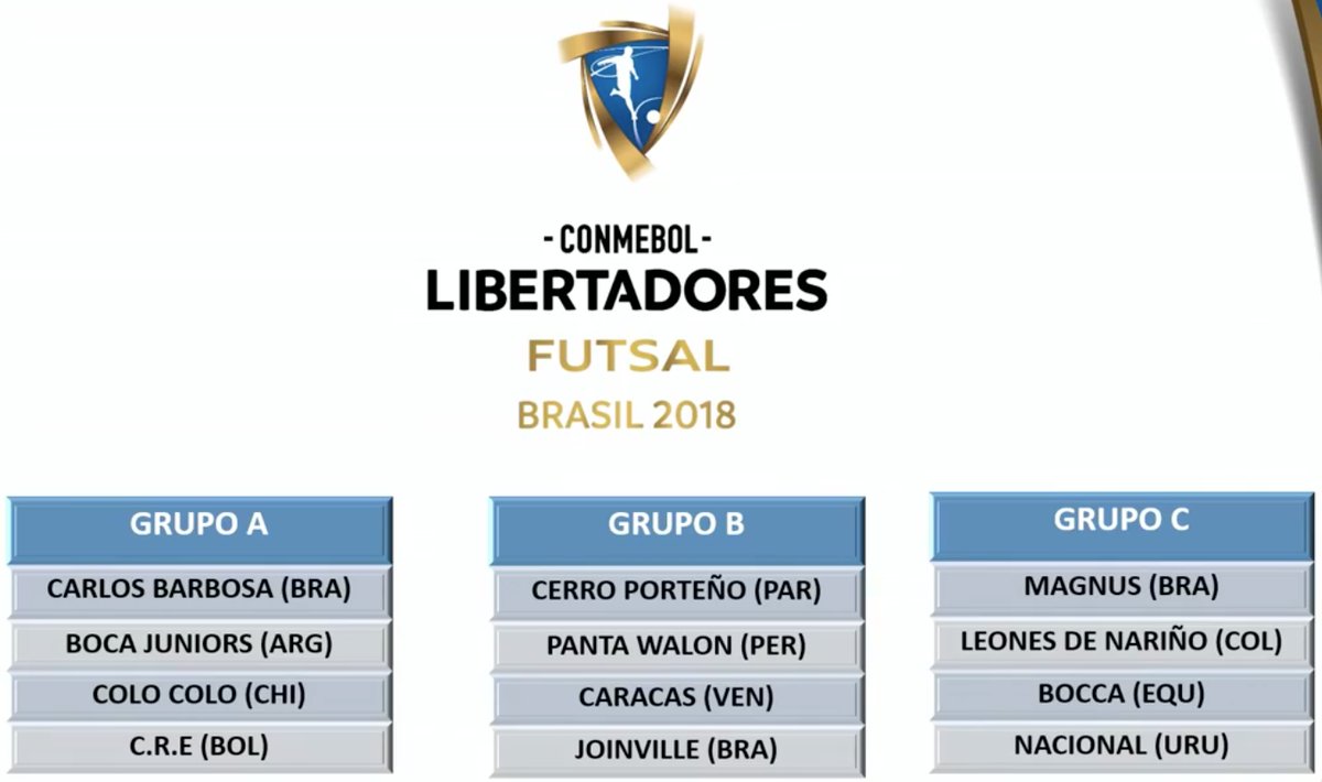 El Grupo B lo integran Cerro Porteño (Paraguay), Panta Wallon (Perú), Caracas (Venezuela) y Joinville (Brasil) y el C, Magnus (Brasil), Leones de Mariño (Colombia), Bocca (Ecuador) y Nacional (Uruguay).