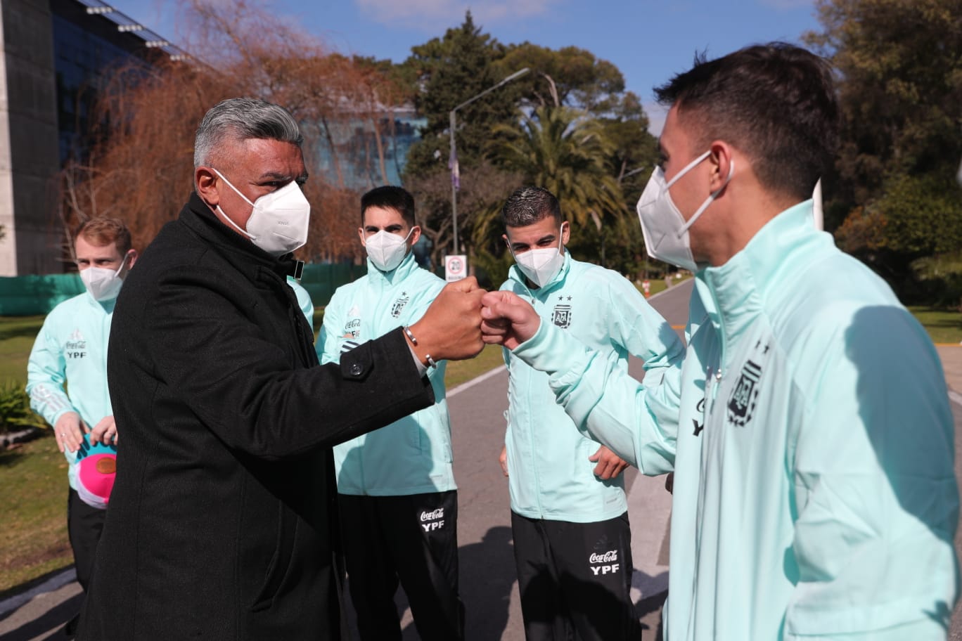 El Presidente de la Asociación del Fútbol Argentino, Claudio Tapia, saludó a la delegación antes de partir