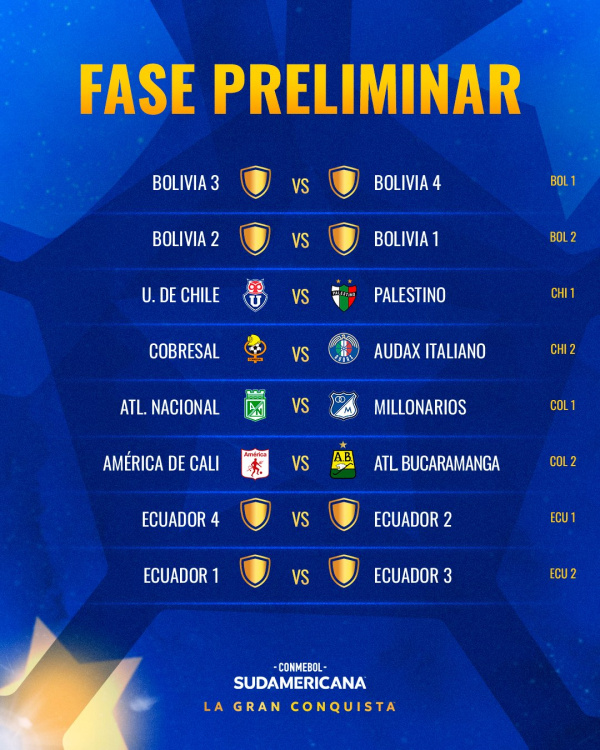 La Dirección de Competiciones y Operaciones de la Confederación Sudamericana de Fútbol realizó el sorteo para la Fase Preliminar de la CONMEBOL Libertadores 2026 y para la Primera Fase de la CONMEBOL Sudamericana 2026.