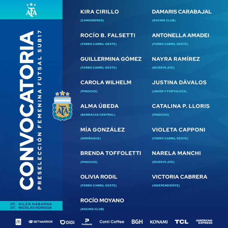 Las jugadoras que entrenan actualmente en el Predio Lionel Messi son: