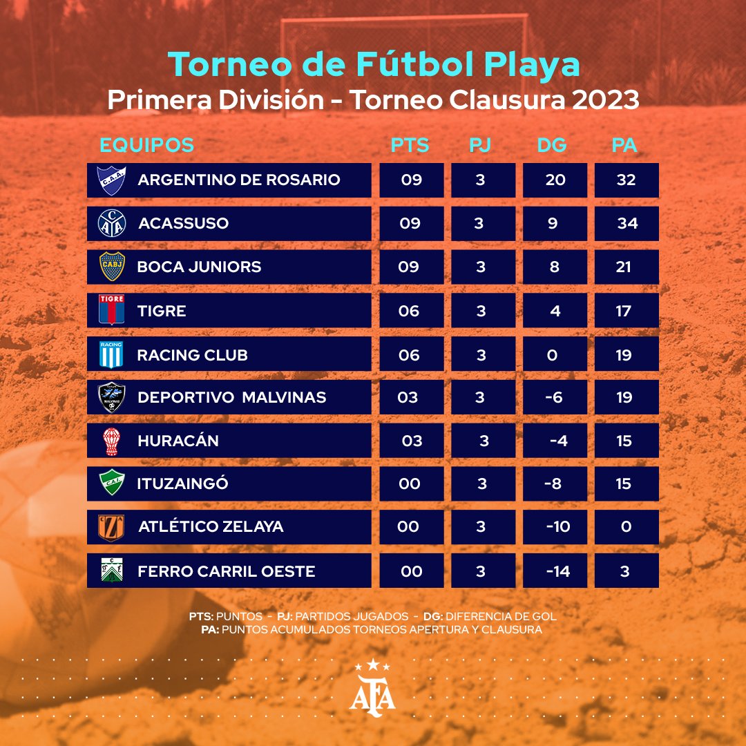 Argentino de Rosario, Acassuso y Boca, tras la disputa de la tercera fecha el Torneo Clausura, los tres con puntaje ideal en el fixture de partidos disputados.