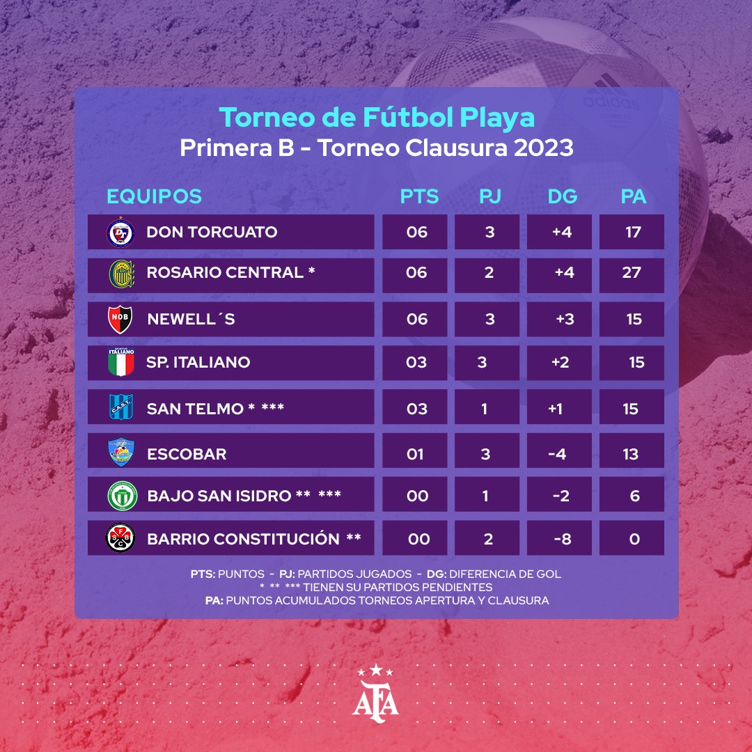 Primera División B: Triple empate en la punta entre Don Torcuato, Rosario Central y Newell’s. El próximo jueves se jugarán los postergados de la primera fecha: San Telmo – Rosario Central y Barrio Constitución – San Isidro.