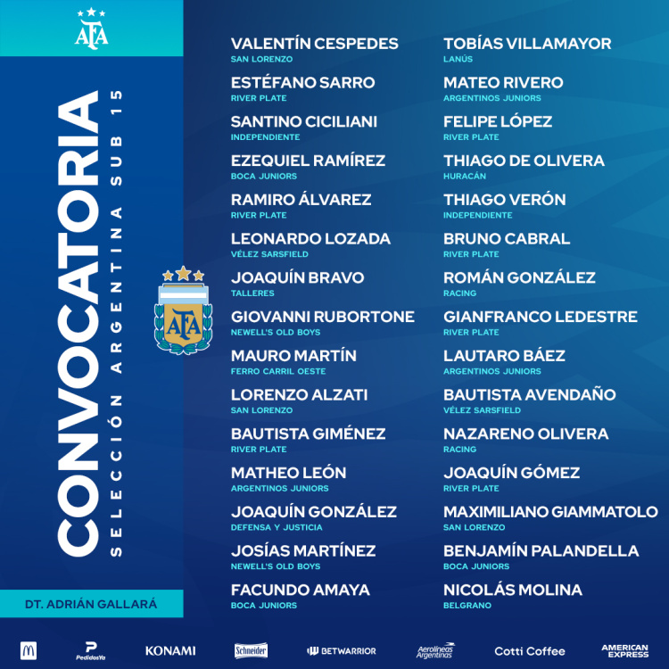 De cara al certamen, la Selección Argentina Sub 15 se entrenará a partir de esta tarde en el predio Lionel Andrés Messi. A continuación, cronograma y convocados.