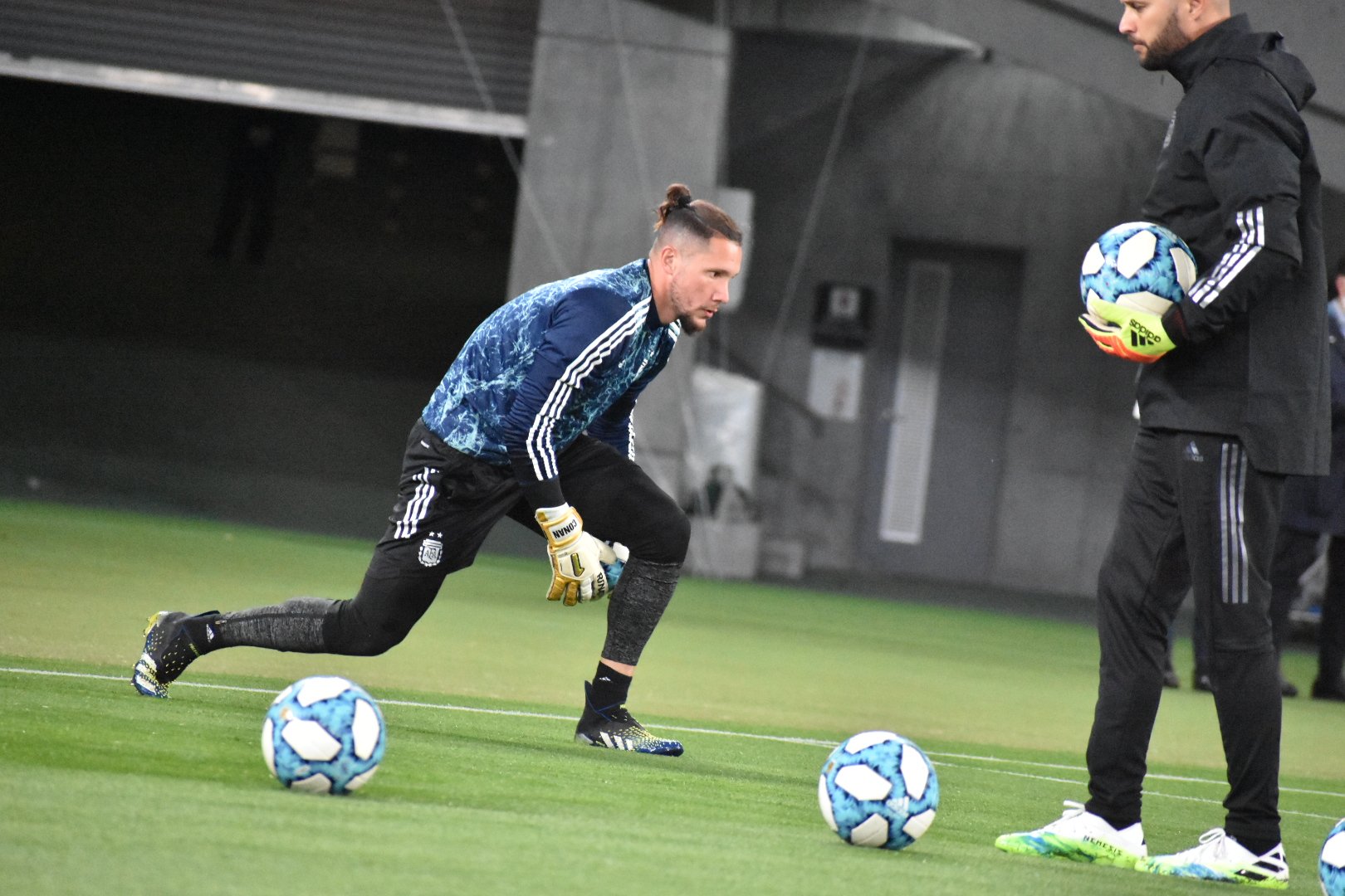 Minutos después de las 18 (hora local), el plantel comenzó sus labores con movimientos de calentamiento guíados por Cristian Palandella, PF del equipo.