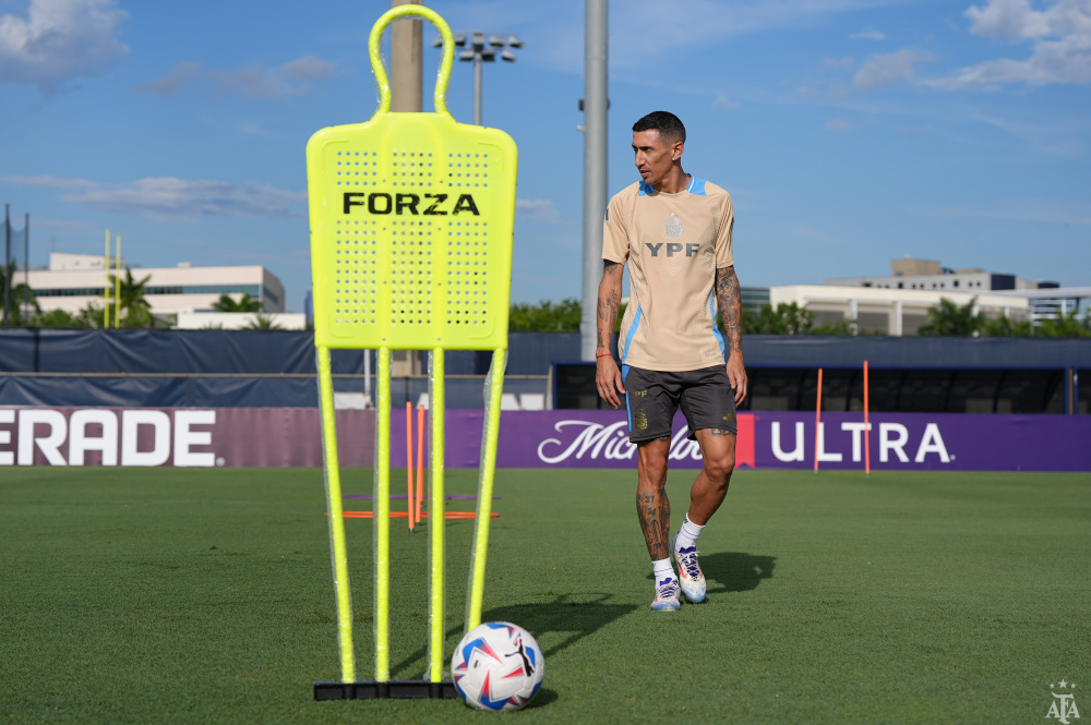 La Selección dirigida por Lionel Scaloni se trasladó esta tarde al Predio del FIU, la Universidad Internacional de Florida (FIU), para realizar noventa minutos de ejercicios tácticos en cancha y físicos en uno de los gimnasios de la Universidad.