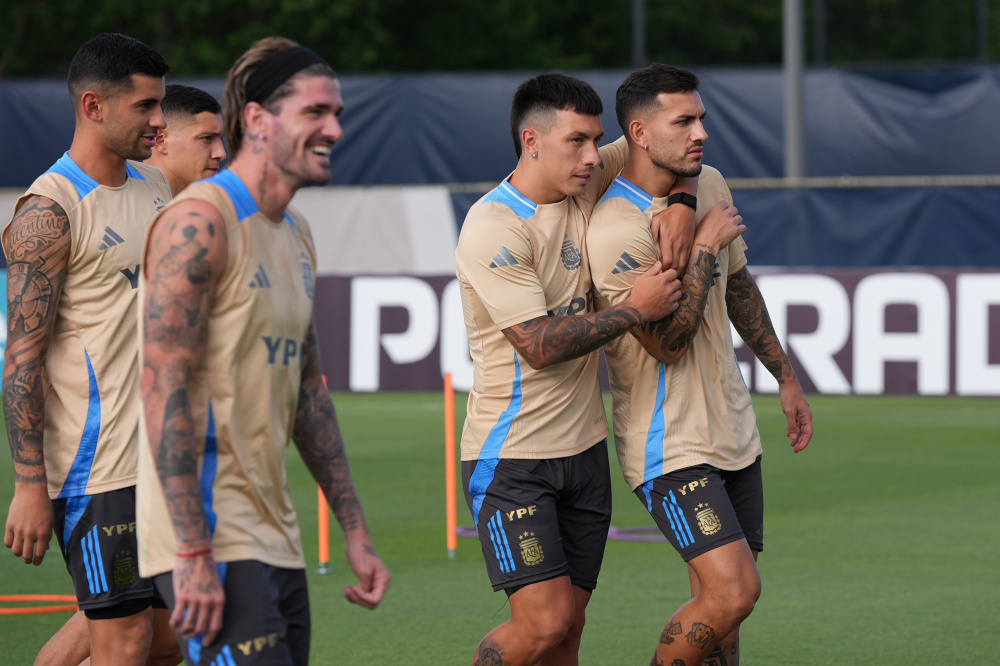 El futbolista Marcos Acuña, con una sobrecarga muscular en el muslo derecho, realizó trabajos de kinesiología y luego labores individuales en campo de juego. En tanto, Lionel Messi, hizo ejercicios kinésicos junto a uno de los fisioterapeutas del plantel.