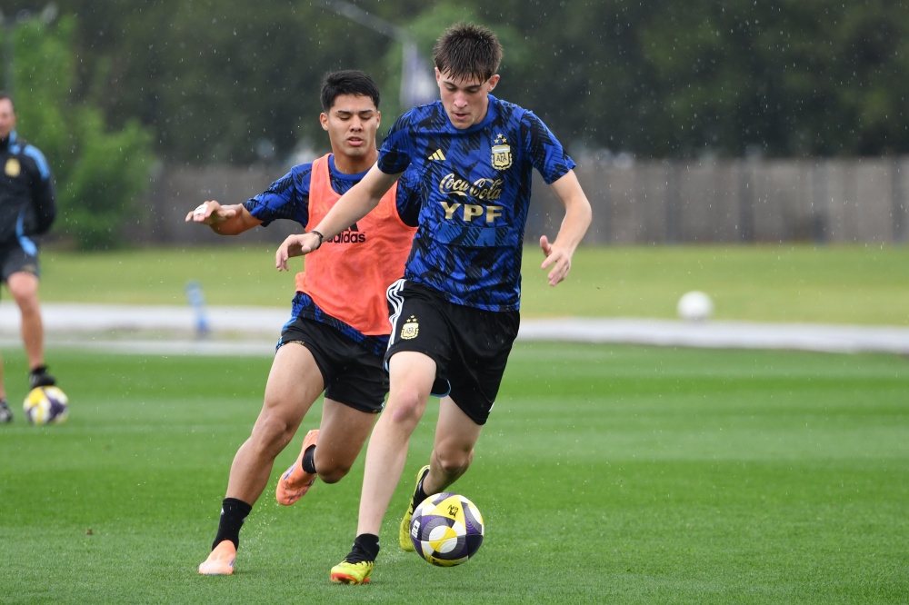 El plantel entrenó esta mañana bajó la lluvia en una de las canchas que posee el Predio Lionel Messi y realiza así los últimos ajustes antes de viajar a Qatar, para la disputa del Mundial de la categoría.