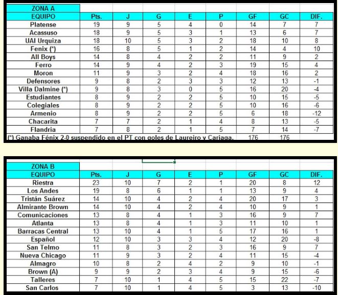 Nueva Chicago 1 (Guillermo Busto) - Atlanta 2 (Julián Barria y José Ledesma)