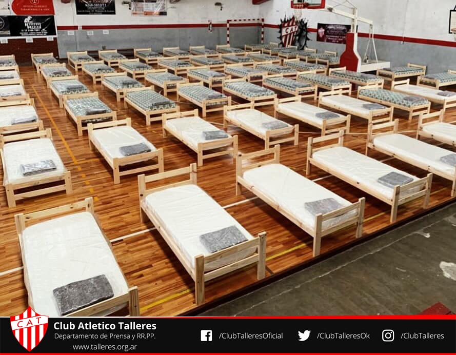 Talleres de Remedios de Escalada colocó 100 camas en su estadio cubierto y además organizs ollas populares mediante un grupo de socios vitalicios.