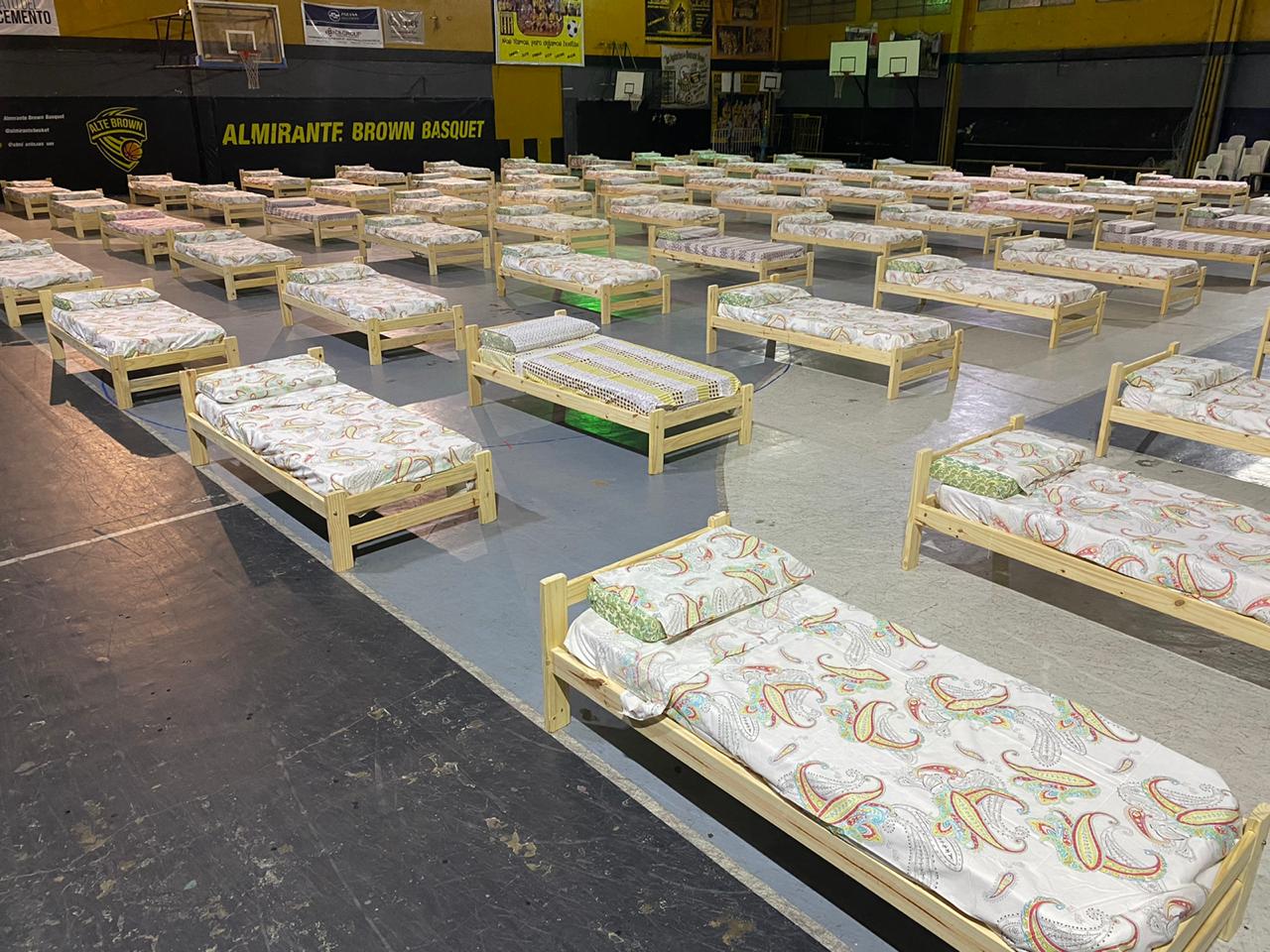 Así quedaron las instalaciones de Almirante Brown para que 70 policias que salen a las calles día a día estén alojados en su gimnasio de la sede