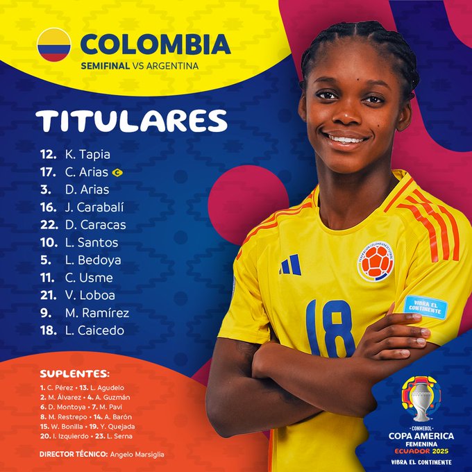 Colombia: Usme (✓), Carabalí (✓), Pavi (✓), Ramírez (X), Caicedo (✓), Bonilla (✓)