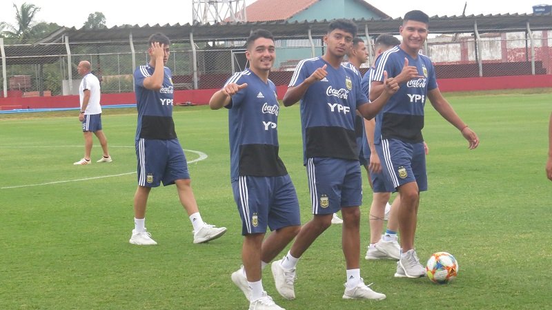 El entrenamiento de la jornada de ayer fue dividido en dos grupos: los jugadores que más minutos cargan de los dos encuentros disputados (0-0 vs España y 3-1 vs Camerún) realizaron labores regenerativas con el preparador físico, Enrique Cesana; por su parte, el resto del grupo trabajó bajos las órdenes de Pablo Aimar, Diego Placente y Adrián Gallará en un ensayo, técnico, táctico y de fútbol reducido. Los arqueros hicieron tareas propias del puesto con Darío Herrera.