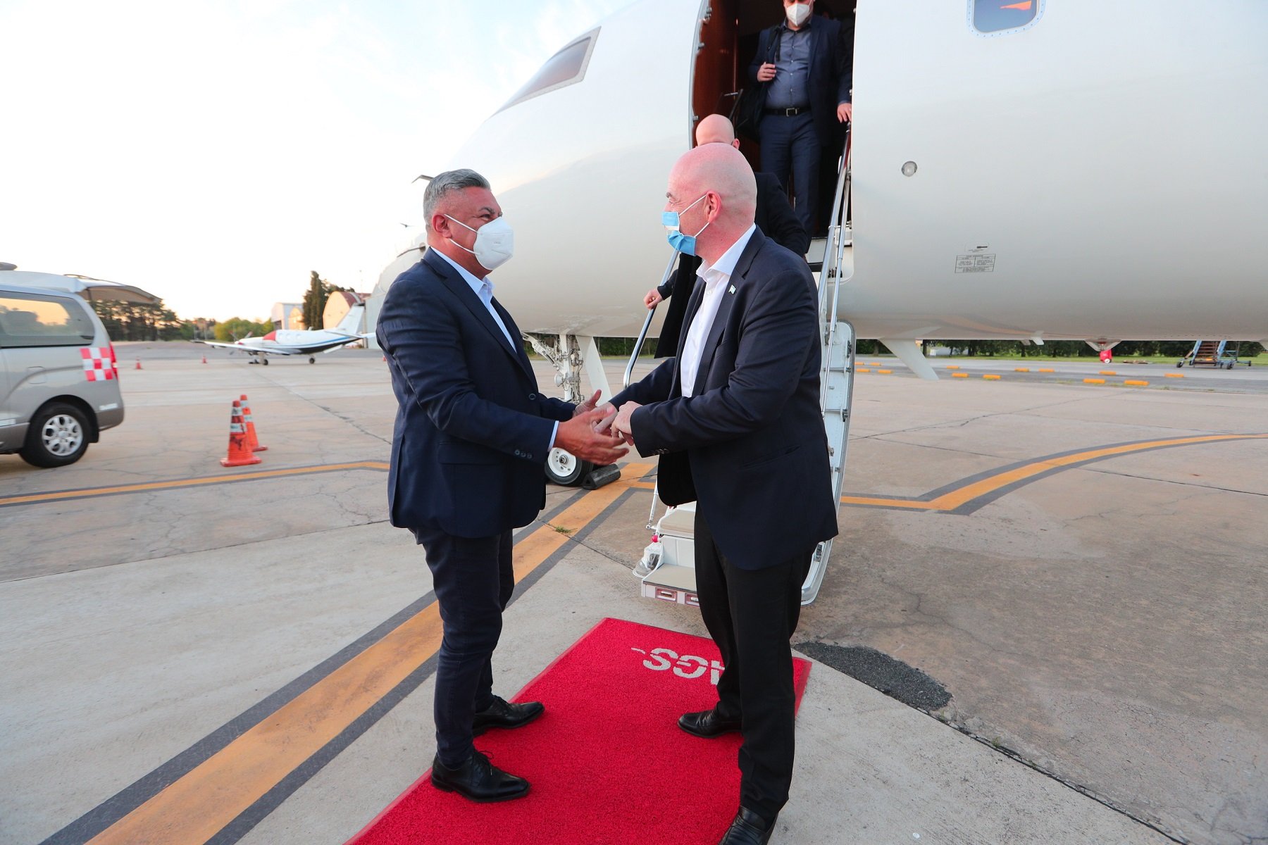 El Presidente de la FIFA, Gianni Infantino, aterrizó este lunes pasadas las 19 horas en el aeropuerto internacional Ministro Pistarini de Ezeiza, y al mediodía visitó el Predio de Ezeiza junto al Presidente de la AFA, Claudio Tapia, y una comitiva compuesta por dirigentes, personal de nuestra Asociación y campeones del mundo.