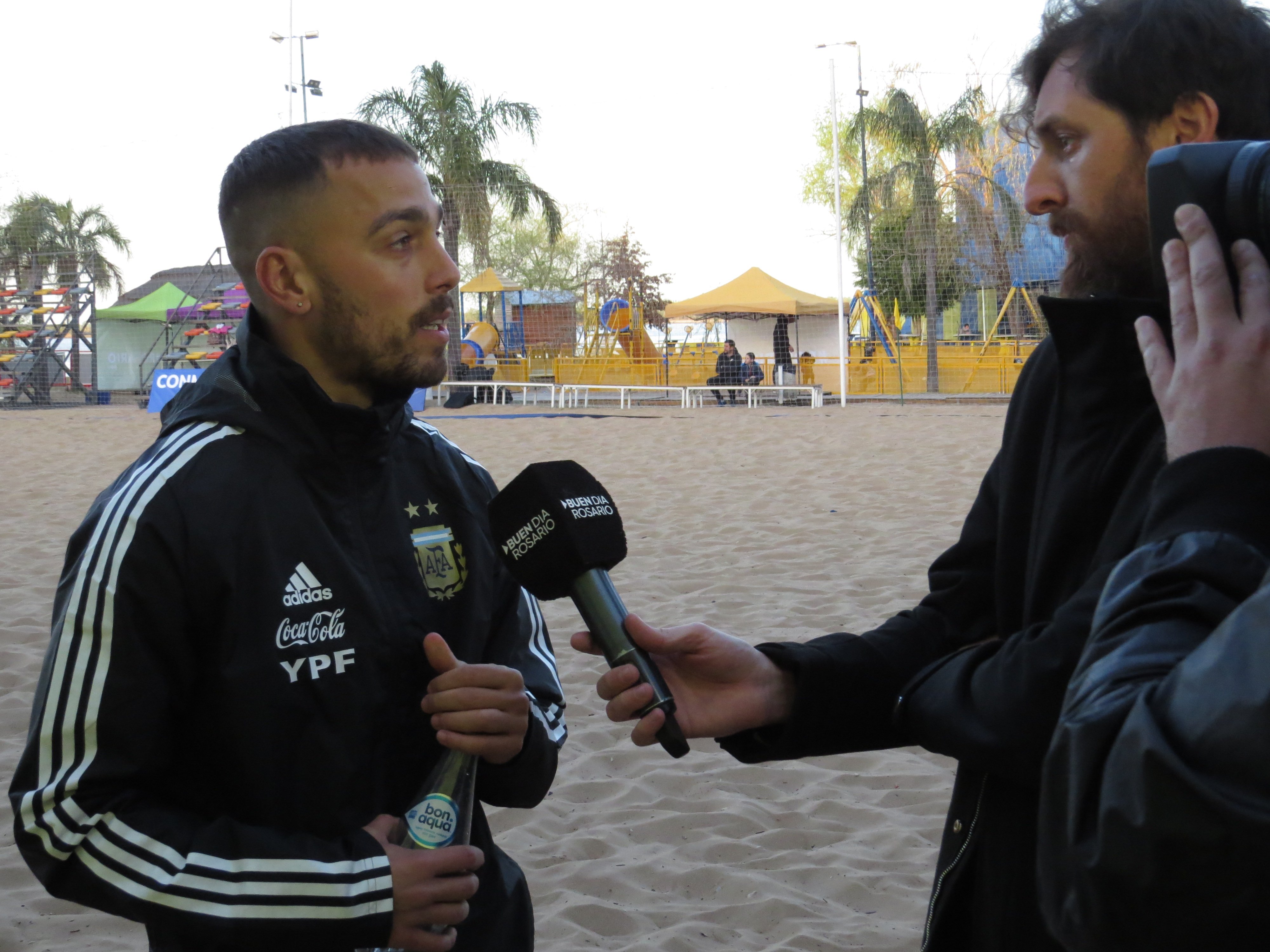 Luego del entrenamiento, los jugadores y el director técnico dialogaron con la prensa que se encontraba en el balneario de Rosario Central.