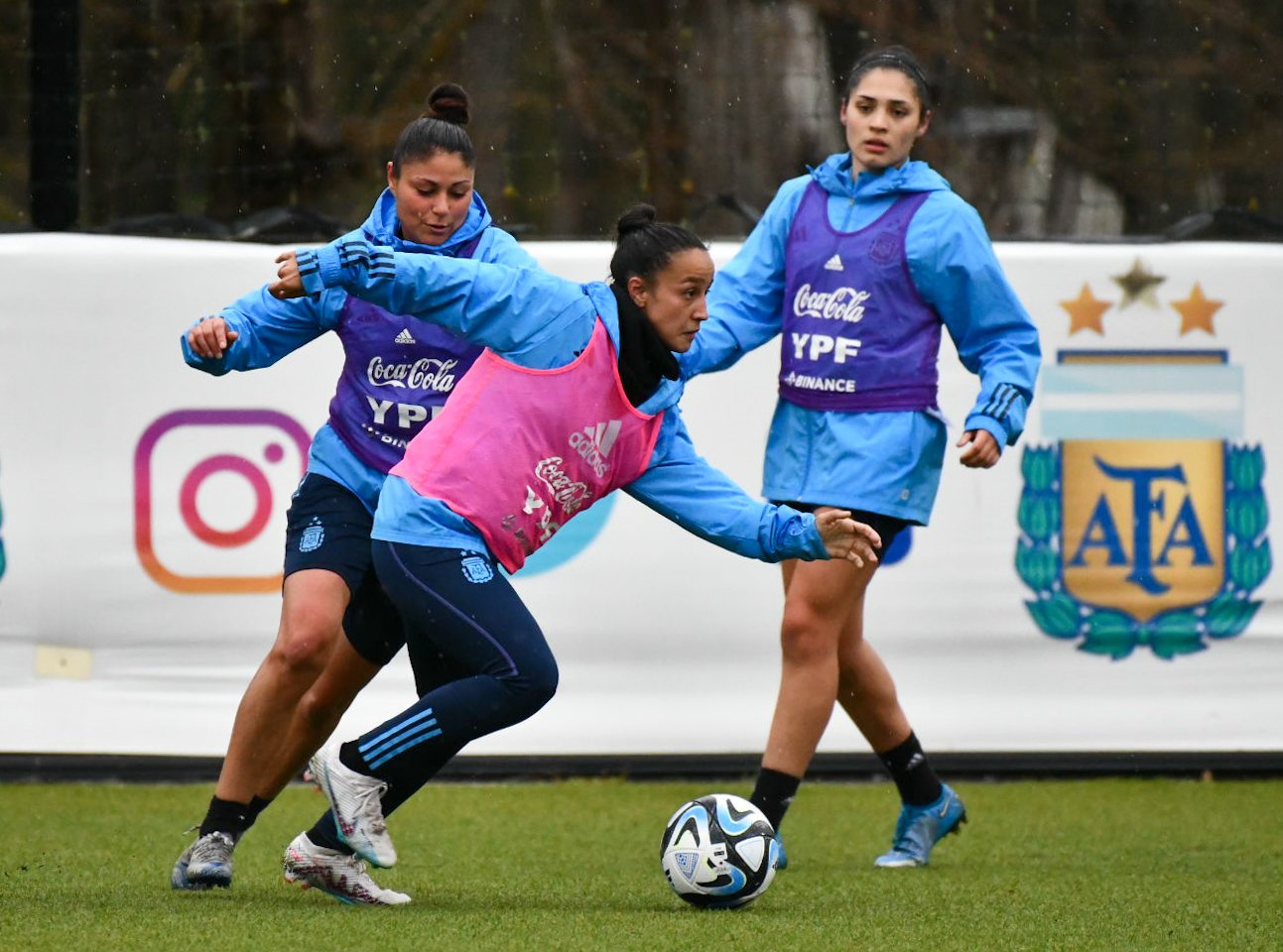 Así, contrarrestando el frío que se adueñó de la mañana en Ezeiza, las futbolistas comenzaron las labores con balón bajo las órdenes de Germán Portanova. El primer bloque de la práctica consistió en circuitos de pases con posterior definición con ambos perfiles. Como es habitual, el entrenador pidió intensidad y precisión en todos los ejercicios.