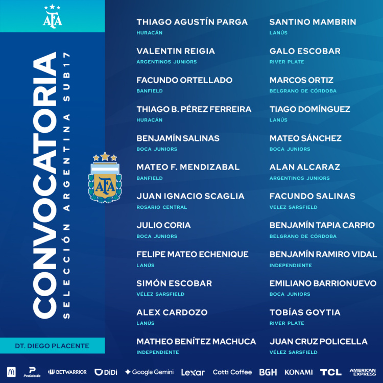 Los jugadores convocados a trabajar esta semana son: