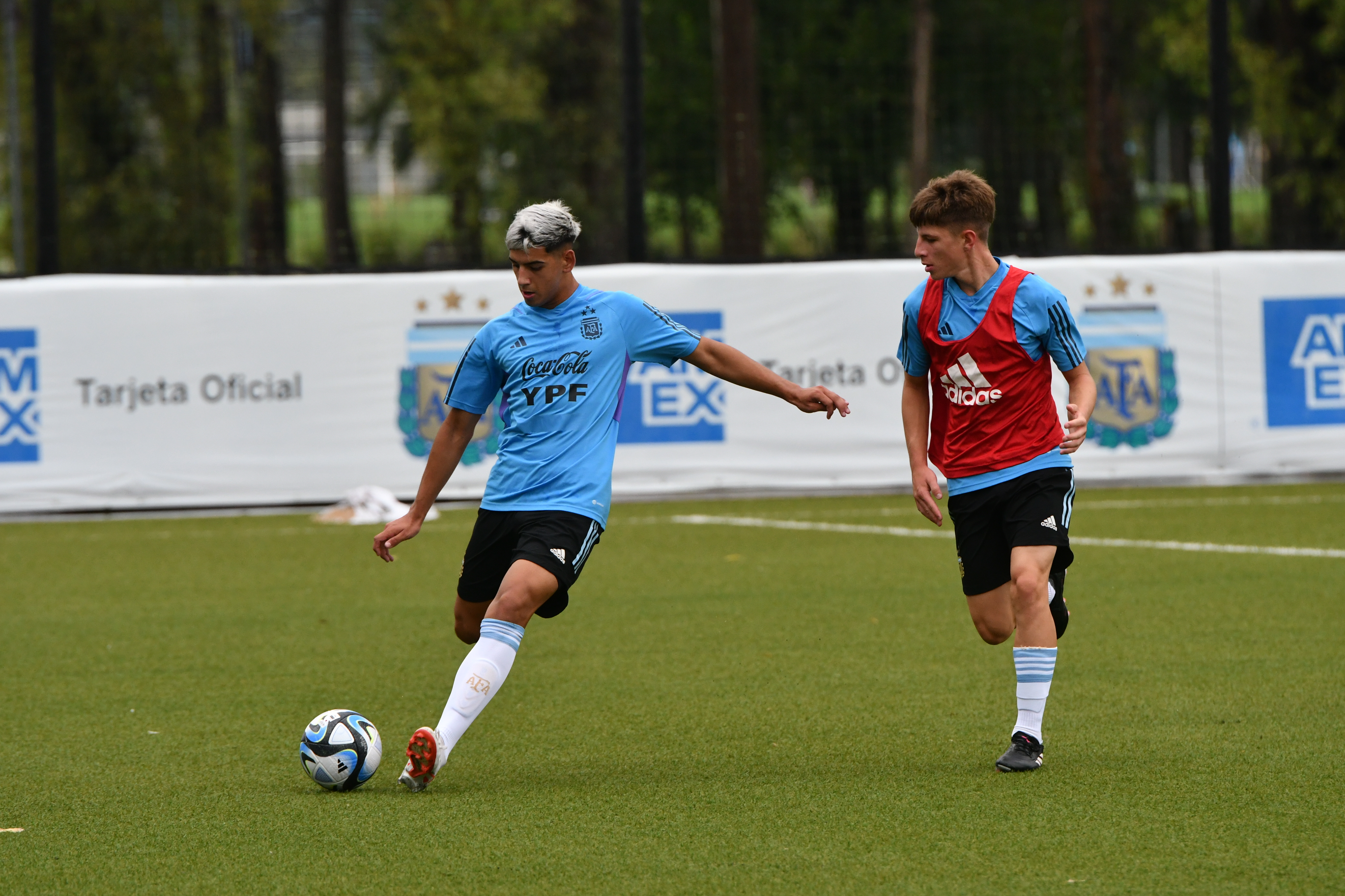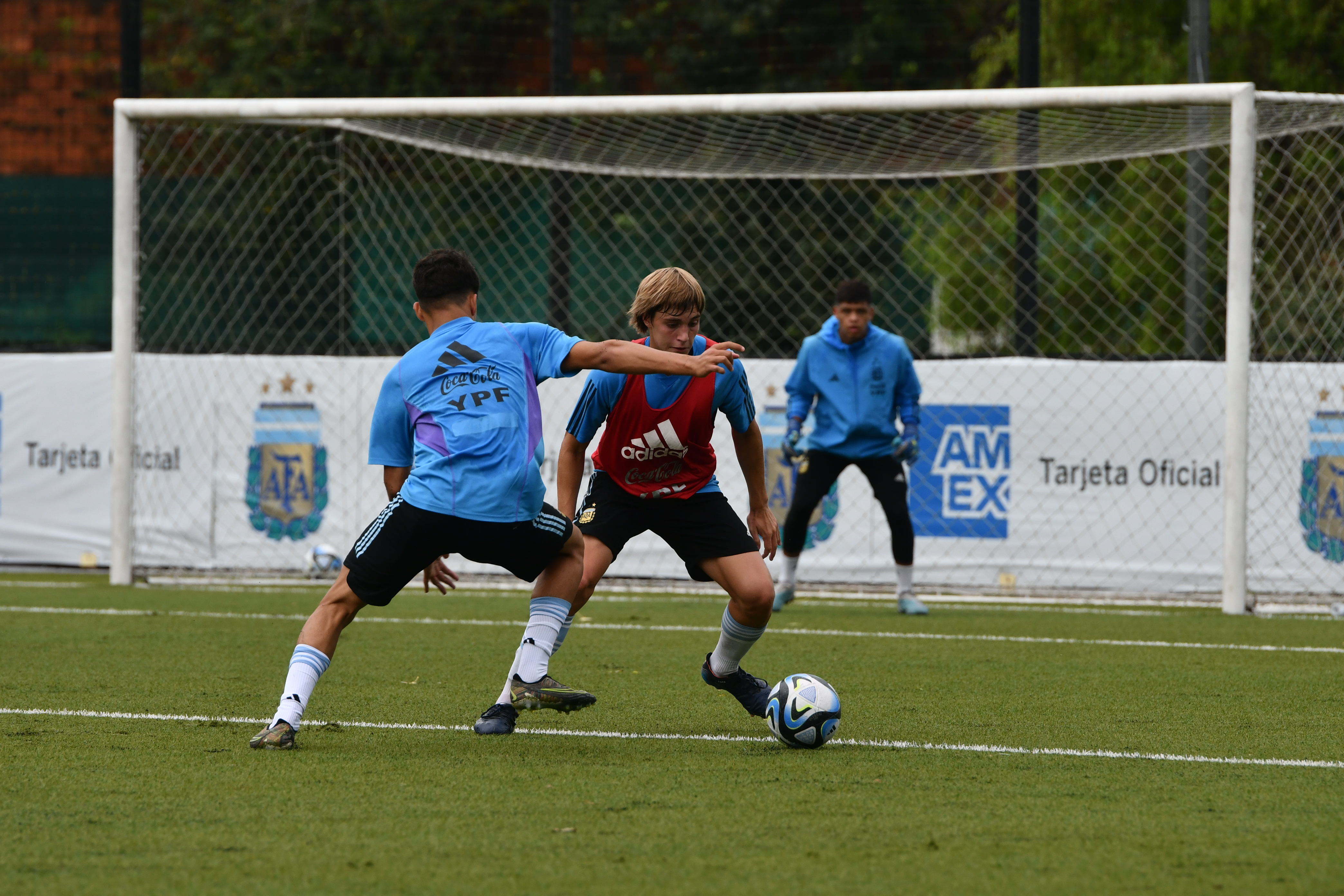 El plantel completó la semana y el microciclo de trabajo con una práctica de una hora y veinte minutos, aprovechando la cancha de césped sintético que posee el Predio de Ezeiza para un entrenamiento con mucho ejercicio con pelota y final con fútbol real, en dos tiempos de quince minutos.