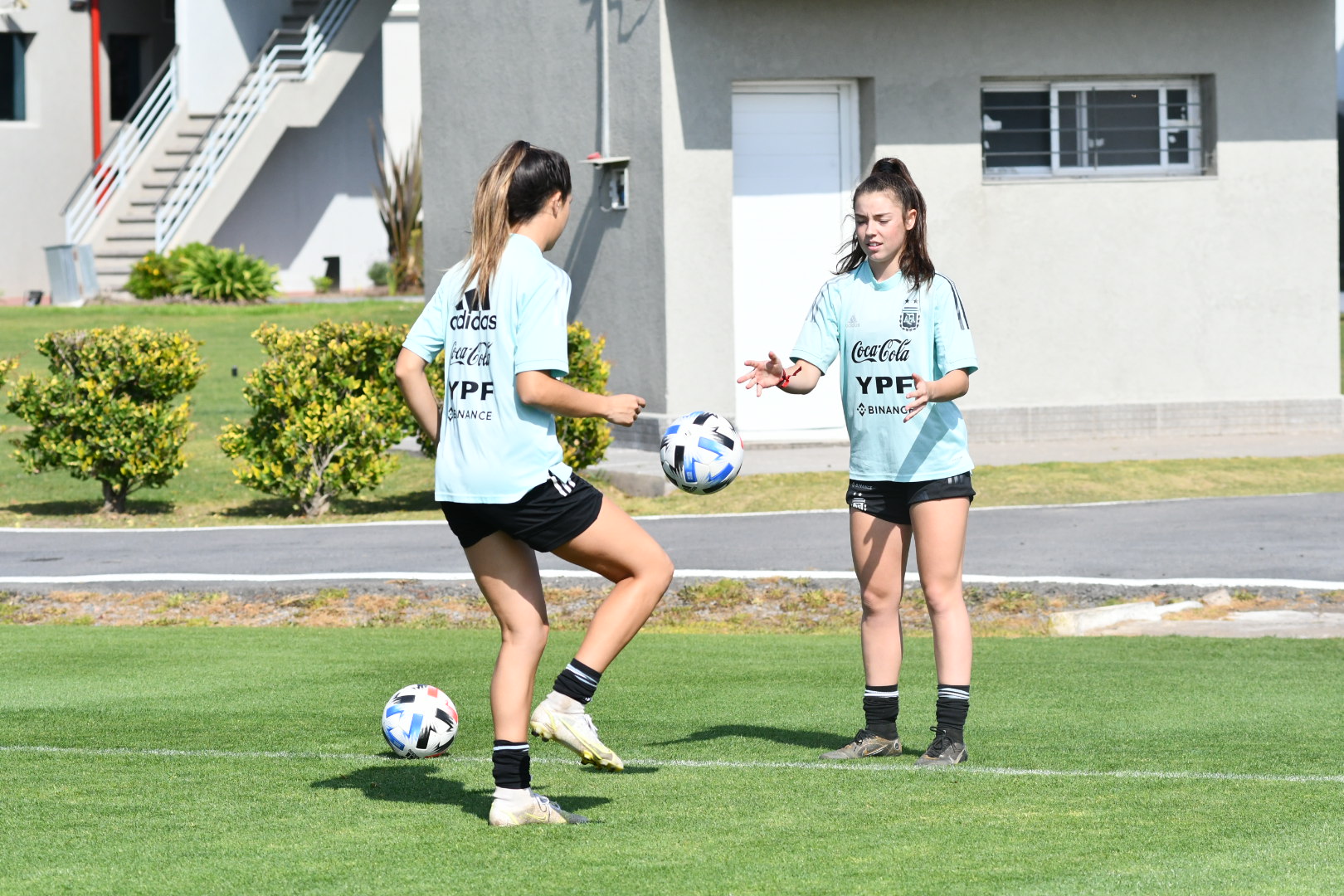 La práctica en campo de juego continuó con el foco puesto en cuestiones tácticas, apuntadas plenamente al próximo encuentro con Uruguay. El mismo implicará el debut en los Juegos Odesur y será el miércoles 5 de octubre a las 10 de la mañana. Christian Meloni insistió en la intensidad de los trabajos y brindó permanentes indicaciones a sus dirigidas. En primera instancia, se realizó un ejercicio de presión con apoyos externos. Luego se realizaron tres bloques de fútbol en espacio reducido con permanentes cambios en los equipos.