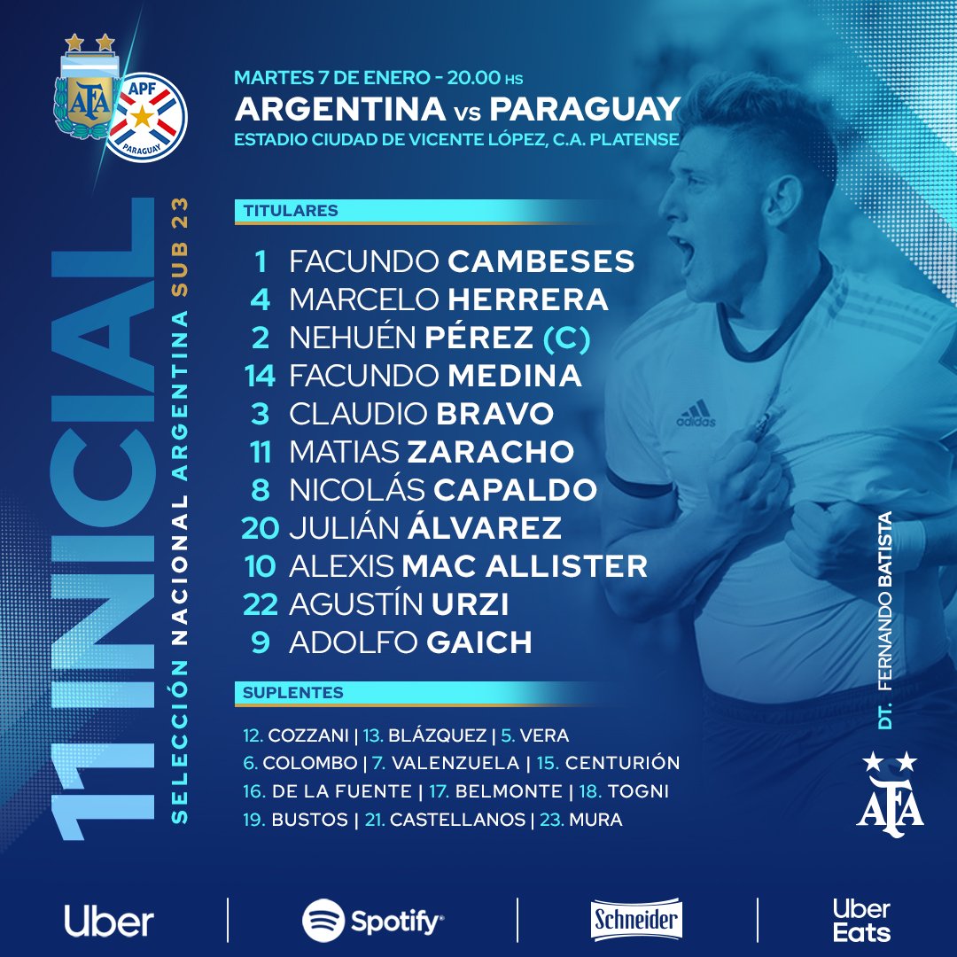 Nueva prueba para la Sub 23 albiceleste, que midió fuerzas con Paraguay en la previa del Preolímpico de Colombia (18 de enero al 9 de febrero), que otorgará dos plazas para los Juegos Olímpicos de Tokio 2020. El amistoso, que se disputó en el Estadio Ciudad de Vicente López, del Club Atlético Platense concluyó igualado 1-1. El tanto argentino lo convirtió Alexis Mac Allister, de penal. Para el elenco paraguayo anotó Jesús Medina.