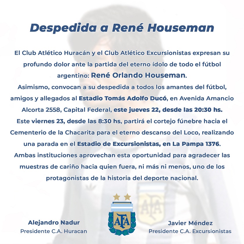 La Asociación del Fútbol Argentino y toda la dirigencia abrazan sentidamente a sus familiares y amigos en este doloroso momento.