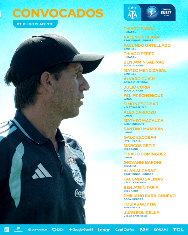 Todo listo para la CONMEBOL Sub 17. Desde el 4 de abril, la Albiceleste disputará el torneo continental en Paraguay, donde compartirá grupo con Perú, Venezuela, Brasil y Bolivia. Por esta razón, el técnico Diego Placente dio a conocer la lista de 23 convocados.