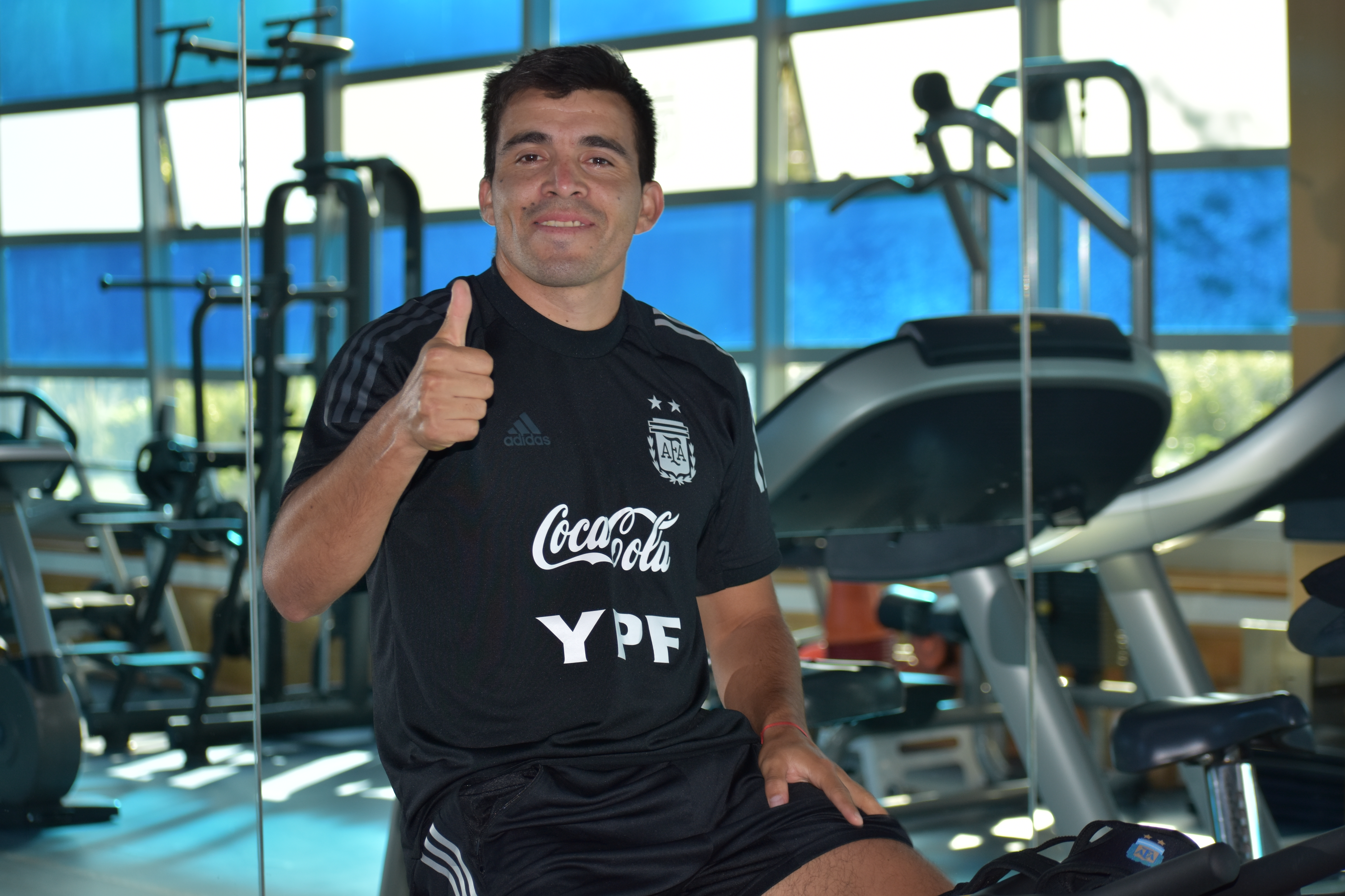 El futbolista de Sevilla sufrió ayer una sobrecarga muscular en el isquiotibial de su pierna derecha. Hoy, realizó labores de recuperación junto a los kinesiólogos en el gimnasio interno del predio.