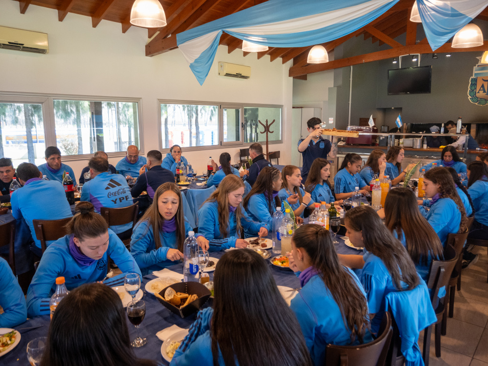 Tras la práctica de esta mañana, el plantel completo que viajará el jueves a Colombia compartió un asado junto con Claudio Tapia. Tras la comida, primero fue la capitana Sofía Domínguez quien tomó la palabra y le agradeció al Presidente y a todo el personal de Ezeiza por el apoyo y trabajo diario. Luego, Tapia manifestó: "El objetivo es sin dudas la formación, por eso espero que en este Mundial puedan continuar con el aprendizaje y creciendo, para cuando les llega la oportunidad de jugar en la Selección Mayor. Aprovechen la oportunidad y disfruten el proceso. Van a jugar un Mundial que es algo hermoso, estamos muy orgullosos de ustedes. Les deseo lo mejor, confiamos mucho en este plantel".