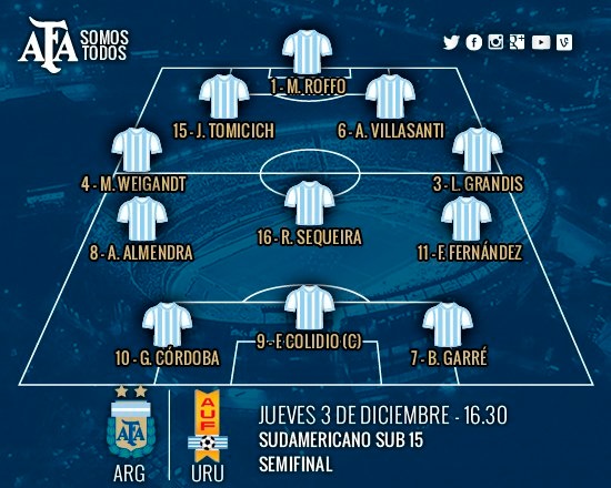 — Selección Argentina (@Argentina) diciembre 3, 2015 [SUB 15] Los chicos entran en calor antes de la semifinal con #Uruguay (@AUFOficial) https://t.co/HaaN99aANT pic.twitter.com/bJNQql3sYb