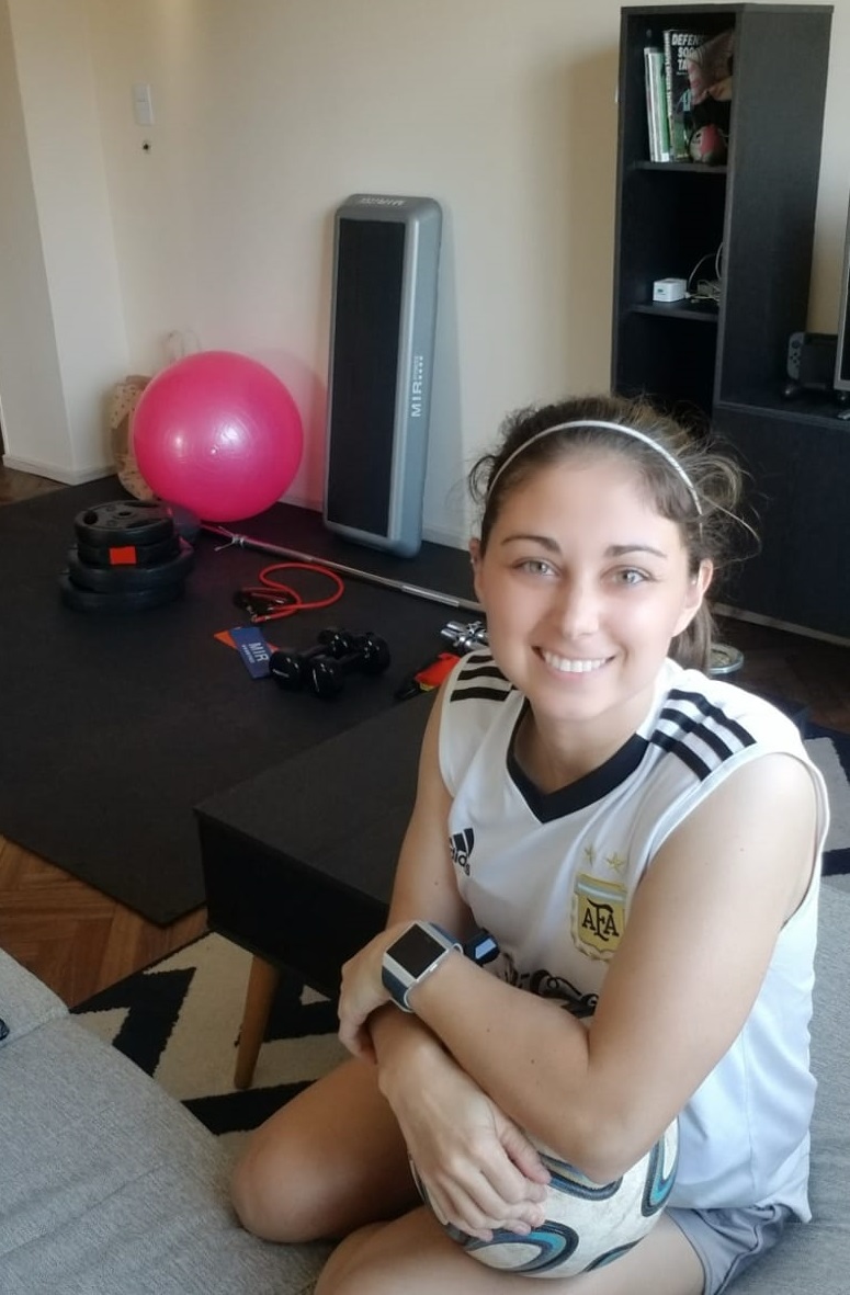 "Como profesional de Ciencias de la Salud entiendo que la prevención es lo más importante y por eso hay que informarnos. A la gente que está en cuarentena le digo que es importante tener una rutina. Si la respetás, este período va a ser más fácil. Hay que incluir una buena alimentación y un poco de ejercicio, eso va a ayudar a mantener tu nivel de energía y tu estabilidad emocional", asegura la lateral albiceleste, quien dice que extraña mucho el fútbol: "No solamente jugar, sino ver a mis compañeras, ir al Tita Mattiussi, incluso viajar una hora para ir a entrenar... Es lo lindo detrás del deporte en sí. Ojalá podamos retornar pronto, pero hay que ser pacientes y estar seguras de que, cuando el momento llegue, vamos a estar listas para volver a la cancha de la mejor manera".