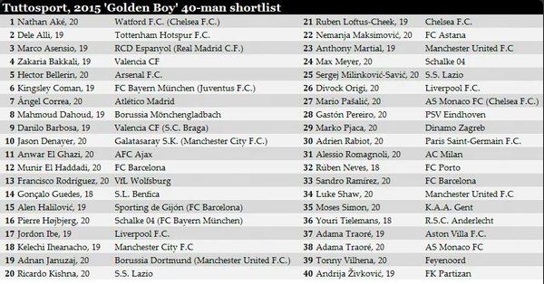 Así como Messi, Agüero y Mascherano están entre los candidatos a obtener el próximo Balón de Oro, nuestra Selección también tiene un representante entre los aspirantes al Golden Boy, el premio que entrega el diario deportivo italiano Tuttosport al mejor futbolista menor de 21 años que juega en las ligas europeas.