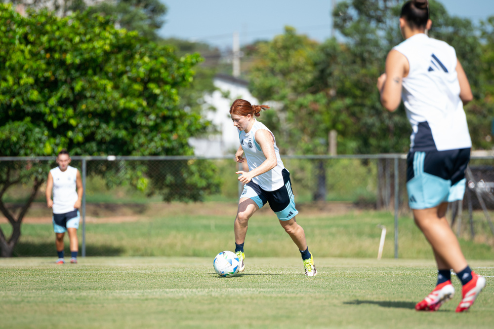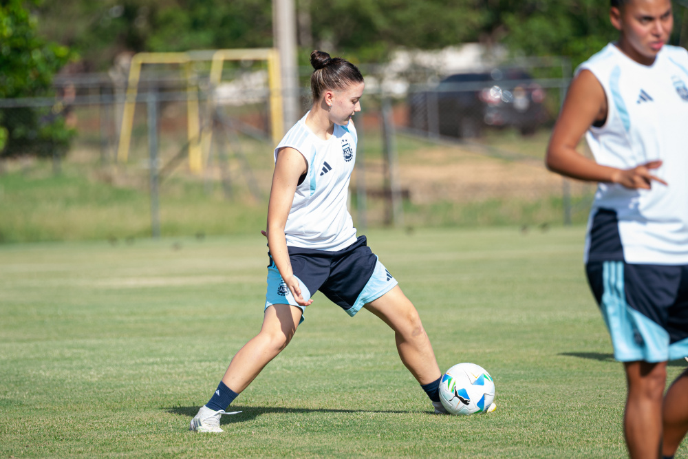 Tras los primeros movimientos, Christian Meloni, junto a Clarisa Huber, dividieron al grupo para desarrollar trabajos de movilidad y salidas de presión con distintas consignas tácticas.