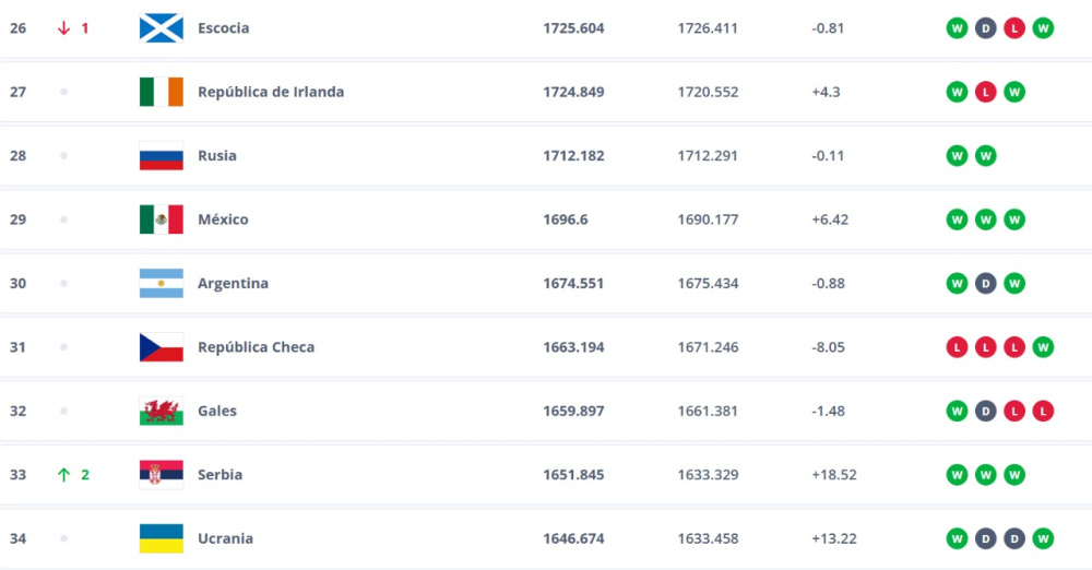 Por su parte, Paraguay (46.ª, -5) pierde cinco puestos y protagoniza la principal bajada entre las 50 mejores selecciones. ª A continuación, en el aspecto negativo destacan Mali (85.ª, -6) y Egipto (101.ª, -6), que pierden seis posiciones, además de India (67.ª, -4), Camerún (70.ª, -4) y las Islas Salomón (77.ª, -4), que caen cuatro.