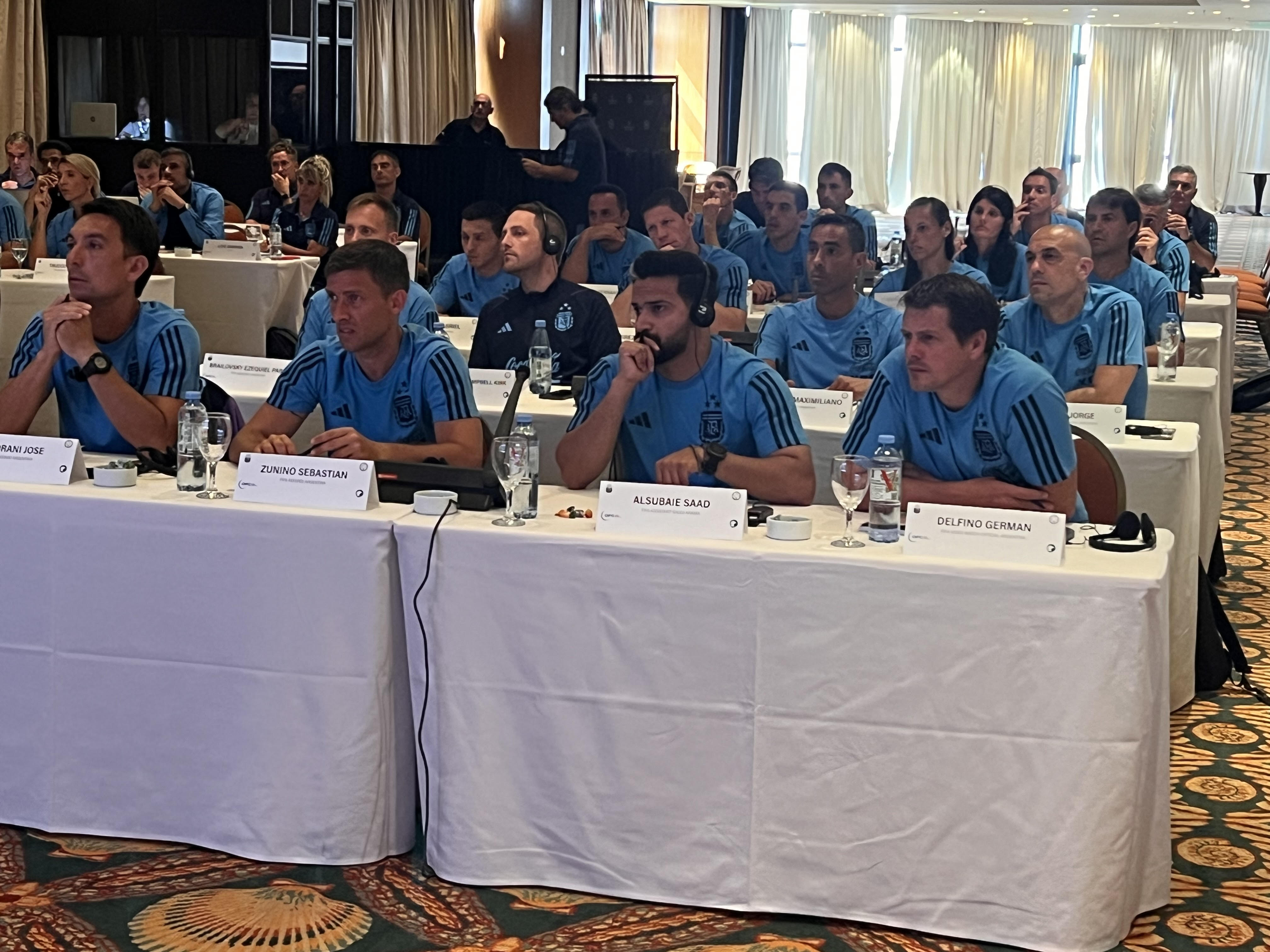 Por la tarde, se realizó la foto institucional de pretemporada y, posteriormente, se presentó al Sr. Manuel Navarro, Presidente del Comité Arbitral de la Federación Saudí. Navarro agradeció a la Asociación del Fútbol Argentino y al Director Nacional de Arbitraje, Federico Beligoy, además de felicitar a los árbitros y asistentes que participaron de los torneos de la liga saudí en 2023.