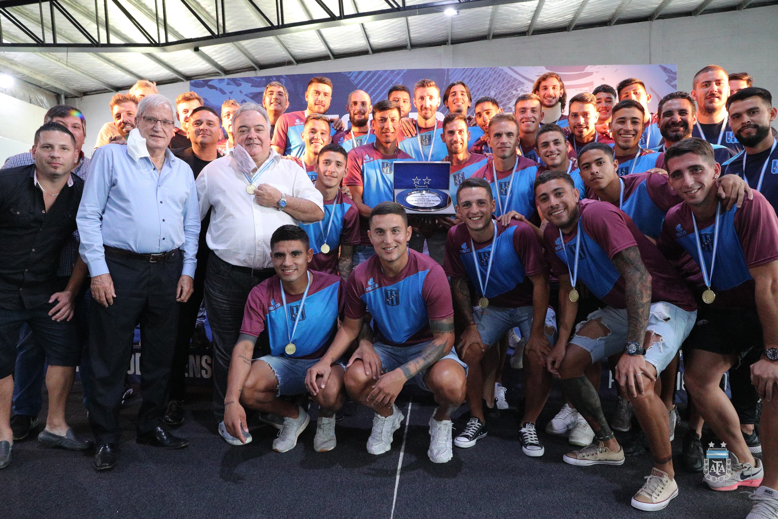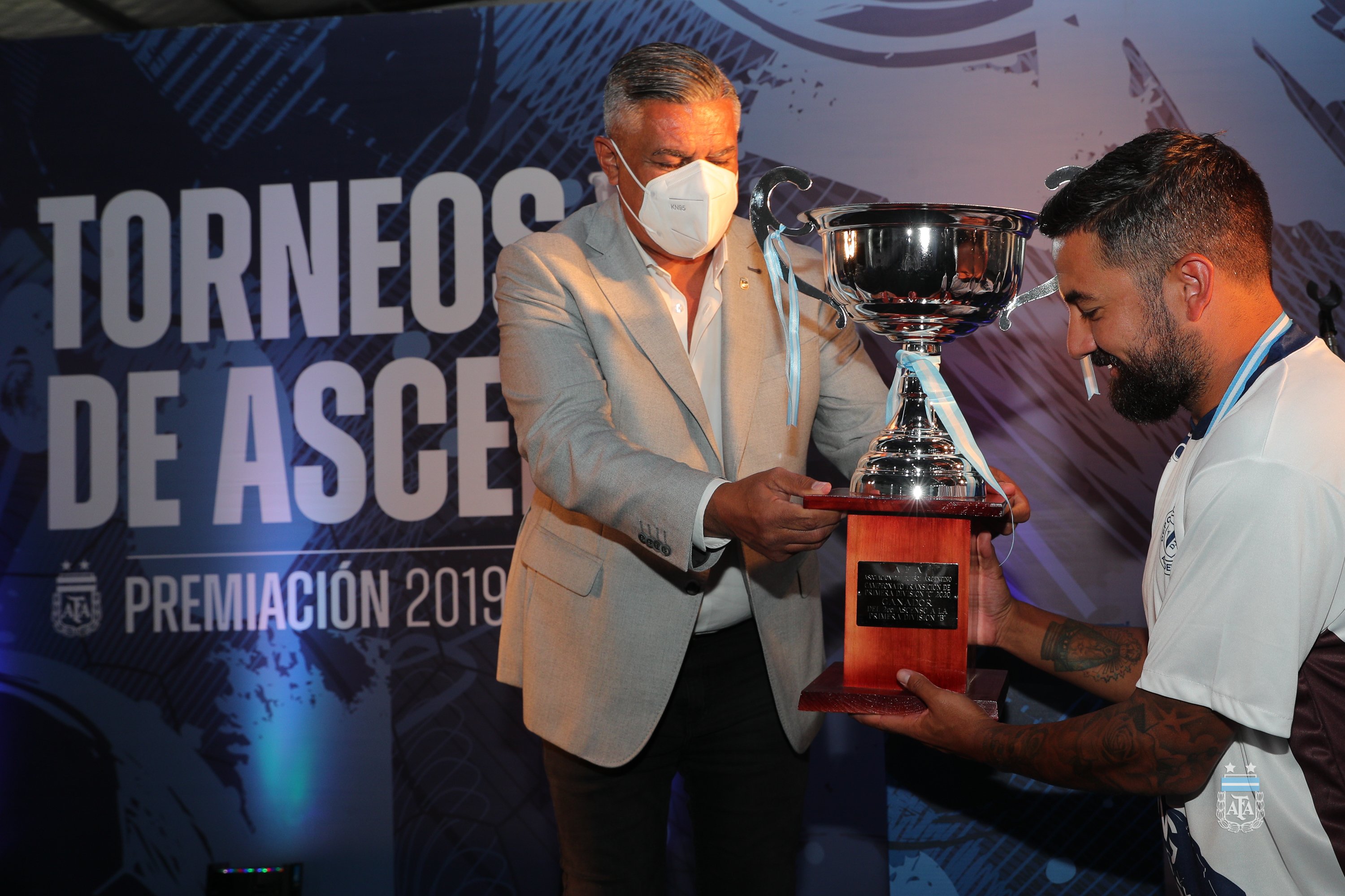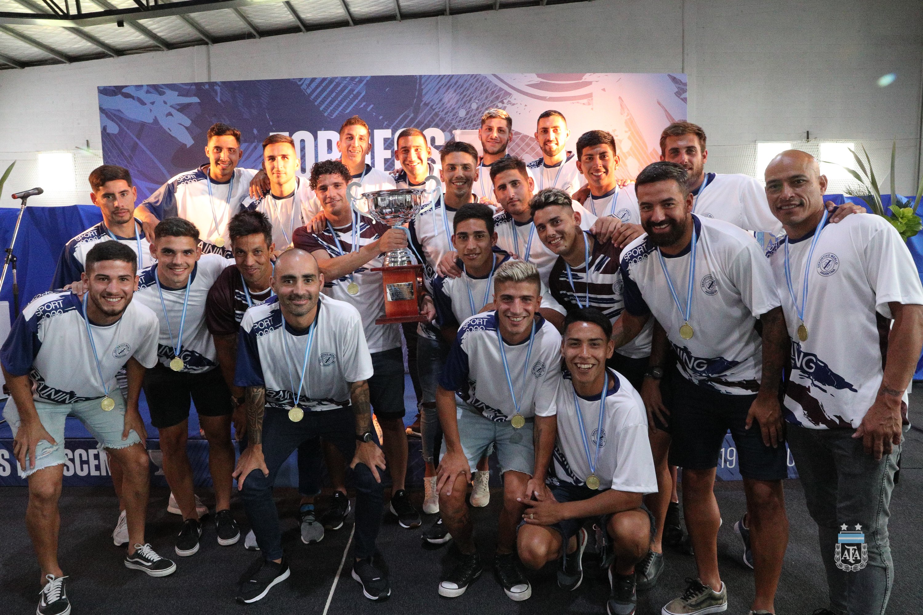 Hoy, en el predio de Ezeza, se realizó la premiación a Platense, San Telmo y Deportivo Merlo, equipos que ascendieron de categoría en la última temporada. Claudio Tapia, Presidente de la Asociación del Fútbol Argentino, estuve presente y entregó los trofeos y medallas a los equipos.