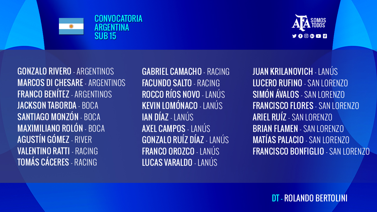A continuación, la lista de los convocados para la Sub 15:
